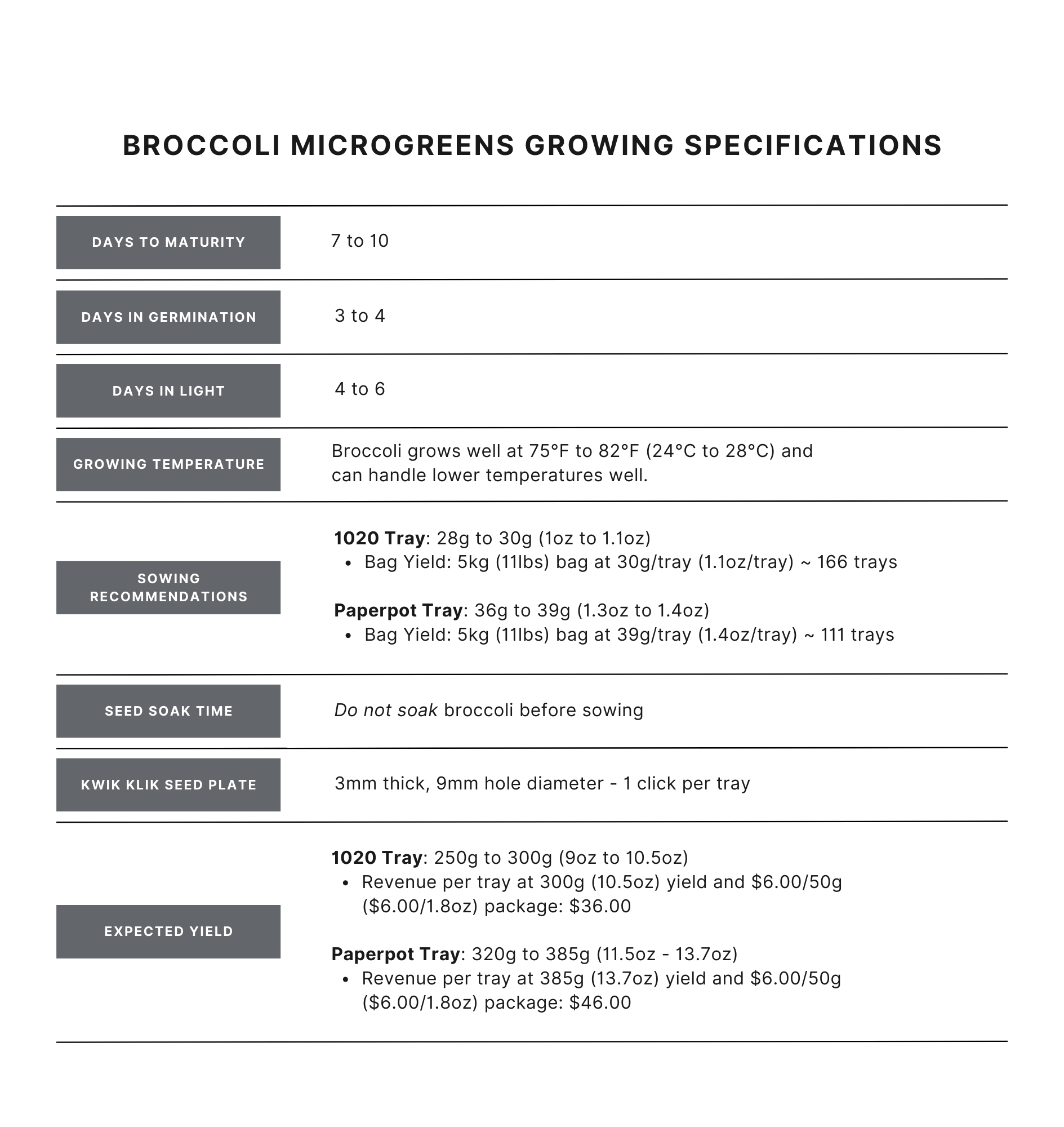 - Broccoli grows well at 75°F to 82°F (24°C to 28°C) and can handle lower temperatures well.