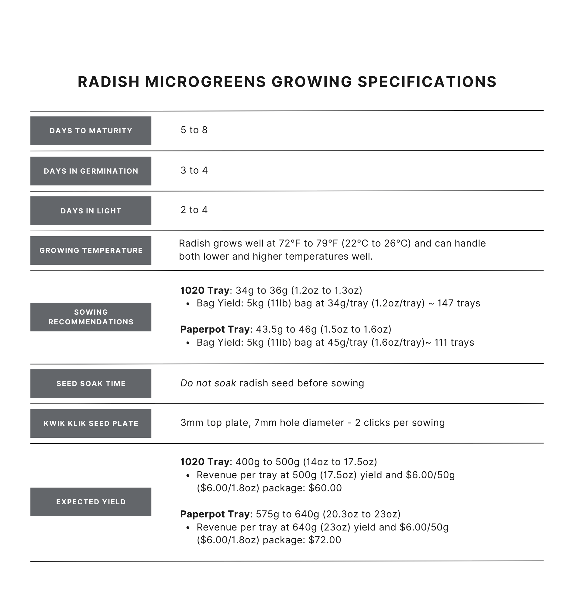 - Days to Maturity: 5 to 8